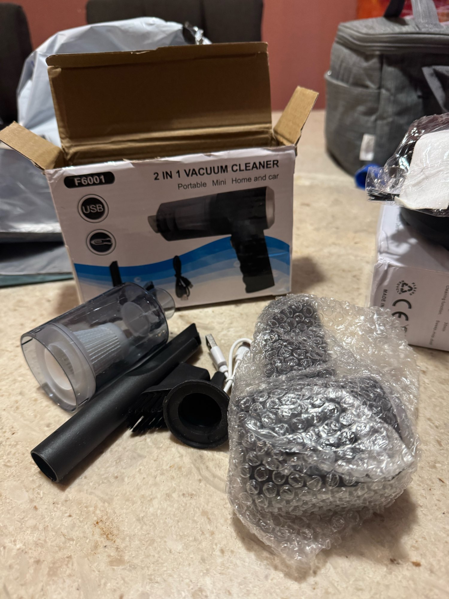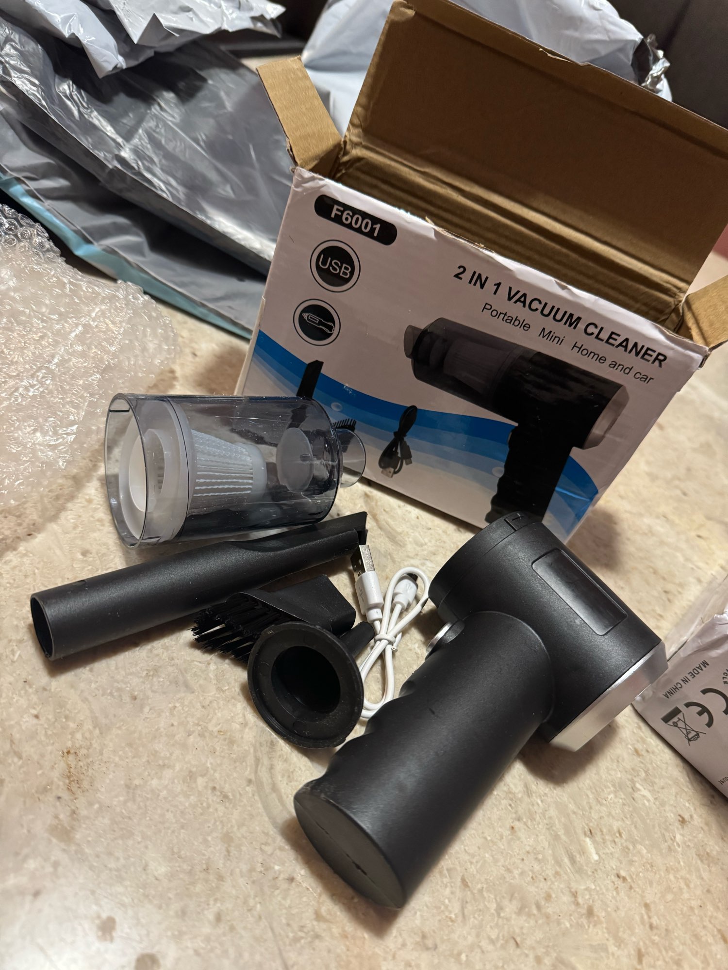 The parcel arrived pretty quickly. The vacuum cleaner is quite small. I expected it to be a little bigger. Came not charged, recharged it, checked it working. Today I will charge it to the maximum and I will already try how long it will last!