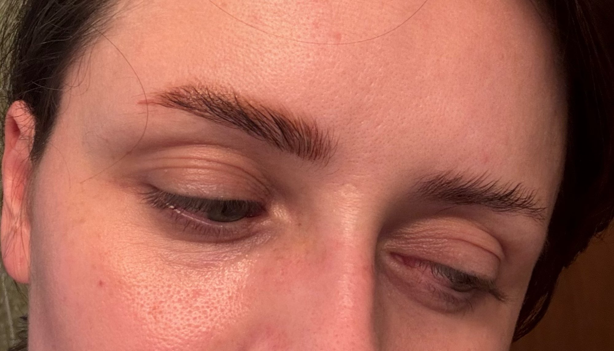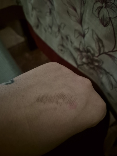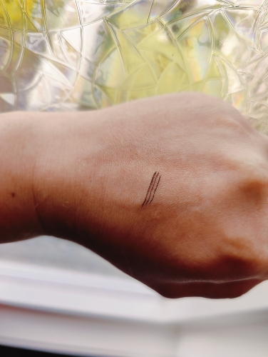 Draws very thin, imitating hairs-it looks very natural, but I chose a reddish shade ((