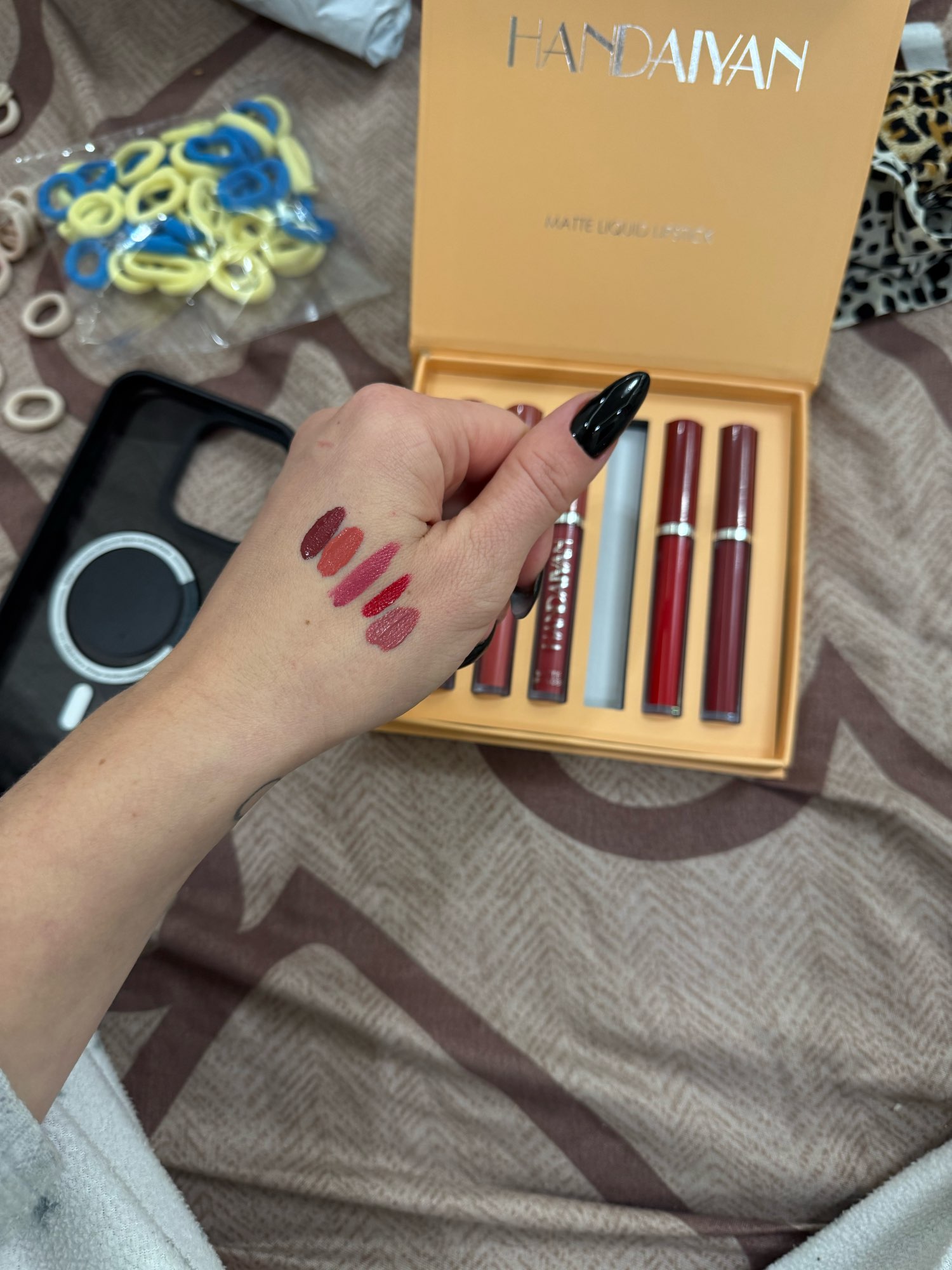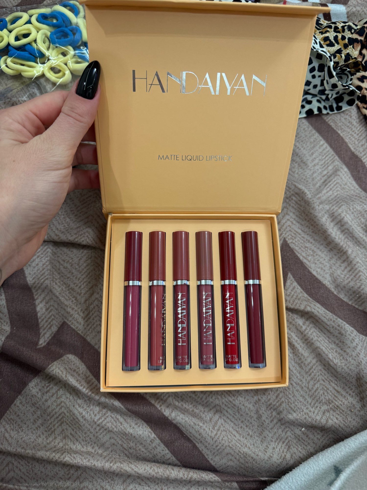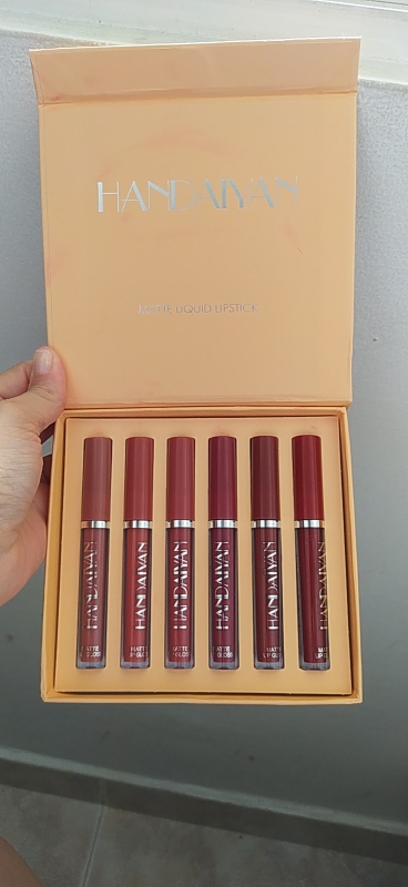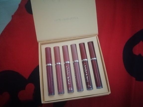 Lipsticks arrived in the stipulated time, the 6 colors arrive, very beautiful and intense, they are matte lipsticks that dry and last a long time, I give it a 10 of 10👍