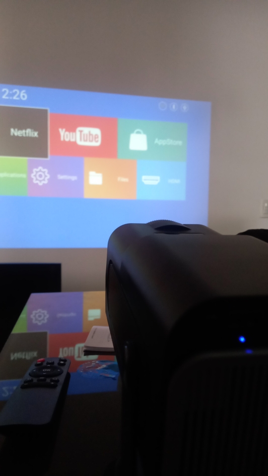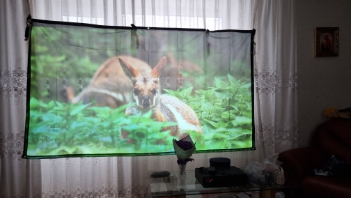 For normal picture you need: 1. dark room, 2. Installation of the projector at right angles, otherwise, there is blur in the corners, automatic correction does not work, you can set it in manual mode, but with a loss of quality. The sound is not very good, in this case the speaker will help. Duplicating the screen from the Android phone does not work, only with Apple. In the photo YouTube video 4 K. The wall is not white, the White will be a little brighter. Pluses-bought very cheaply, for $25 gaming credits with Euromania. Additionally ordered a cover and stand for a tripod. The cord is not long. But generally satisfied, it's cool!