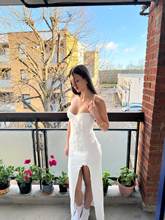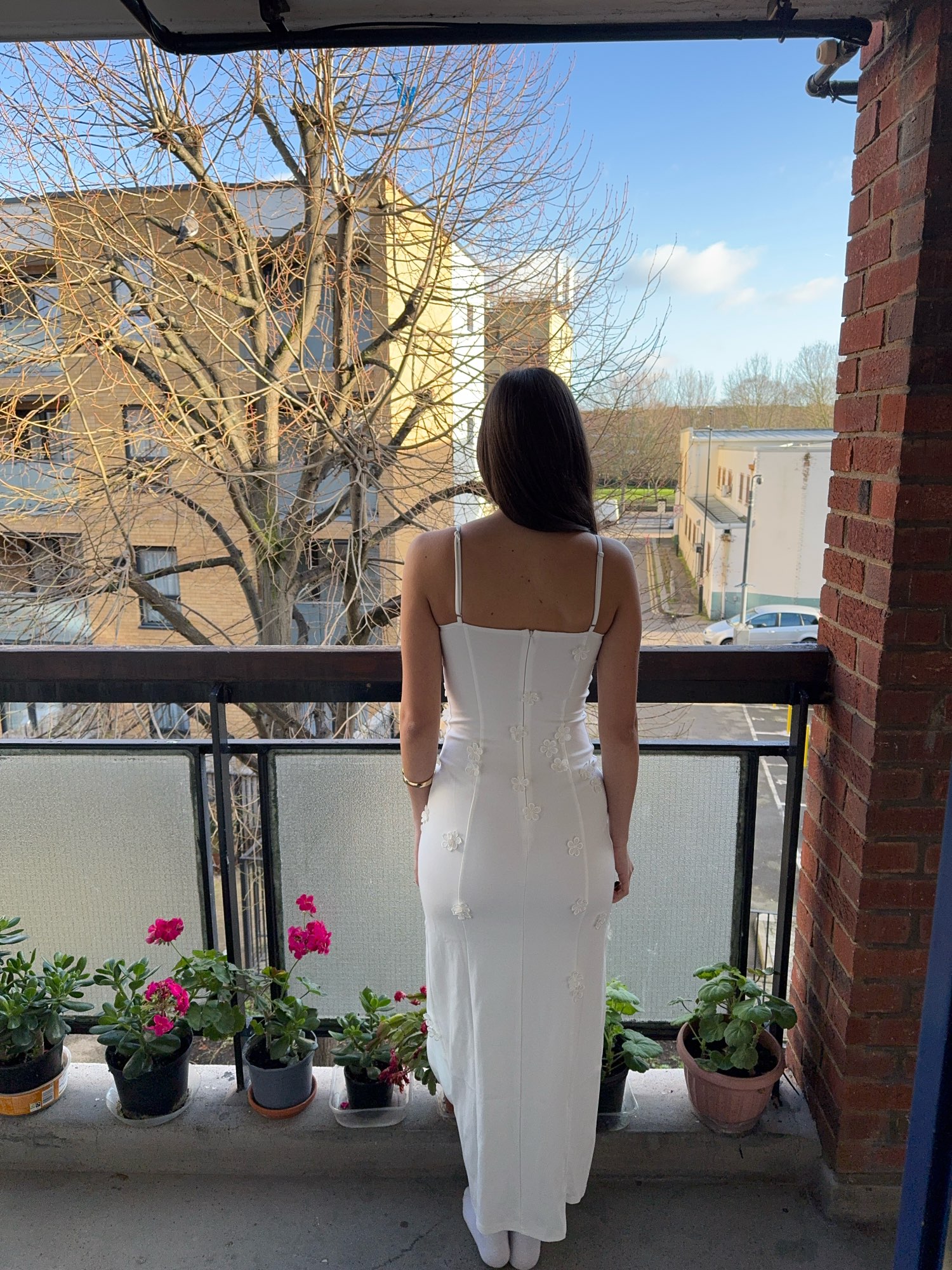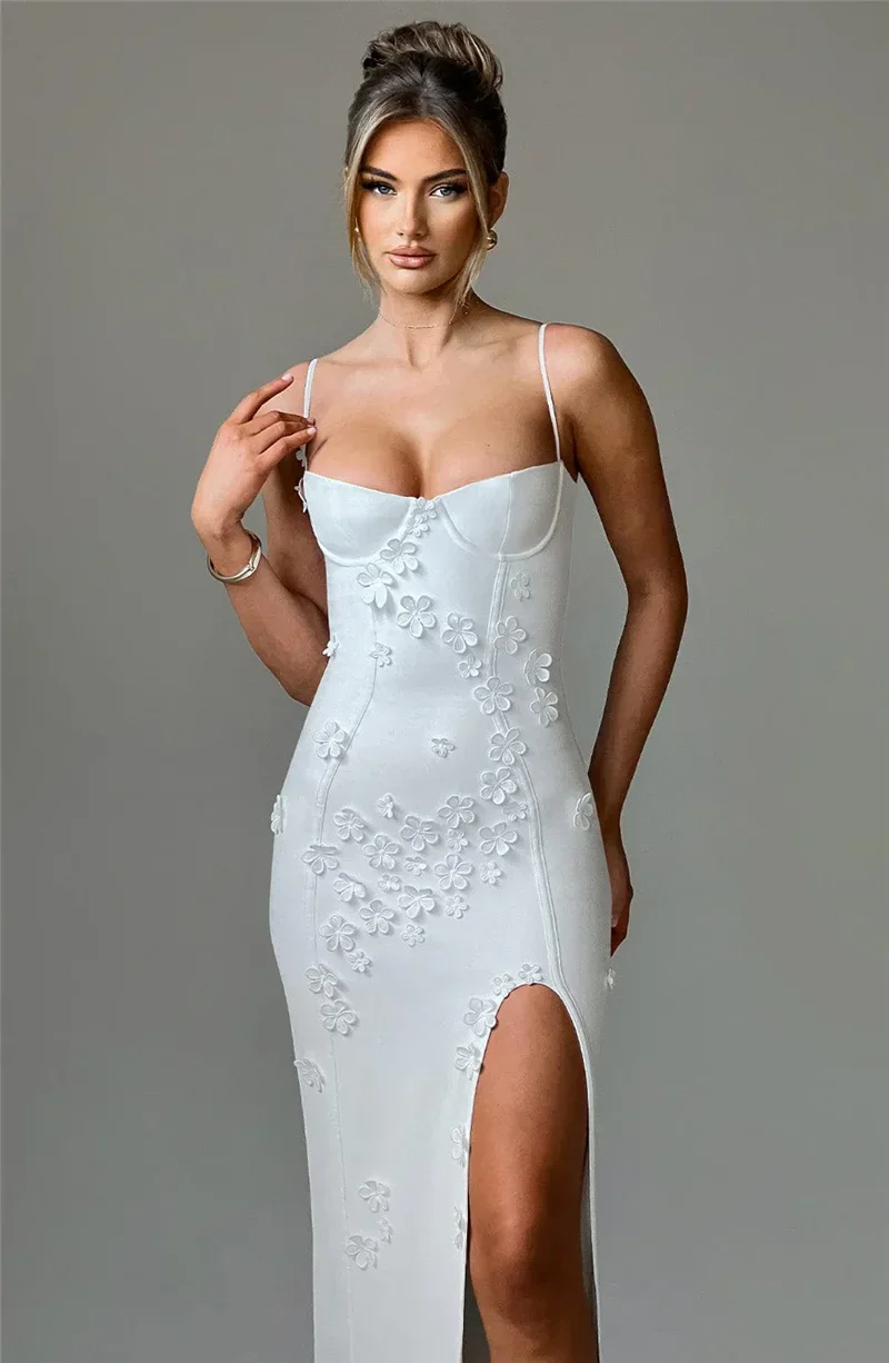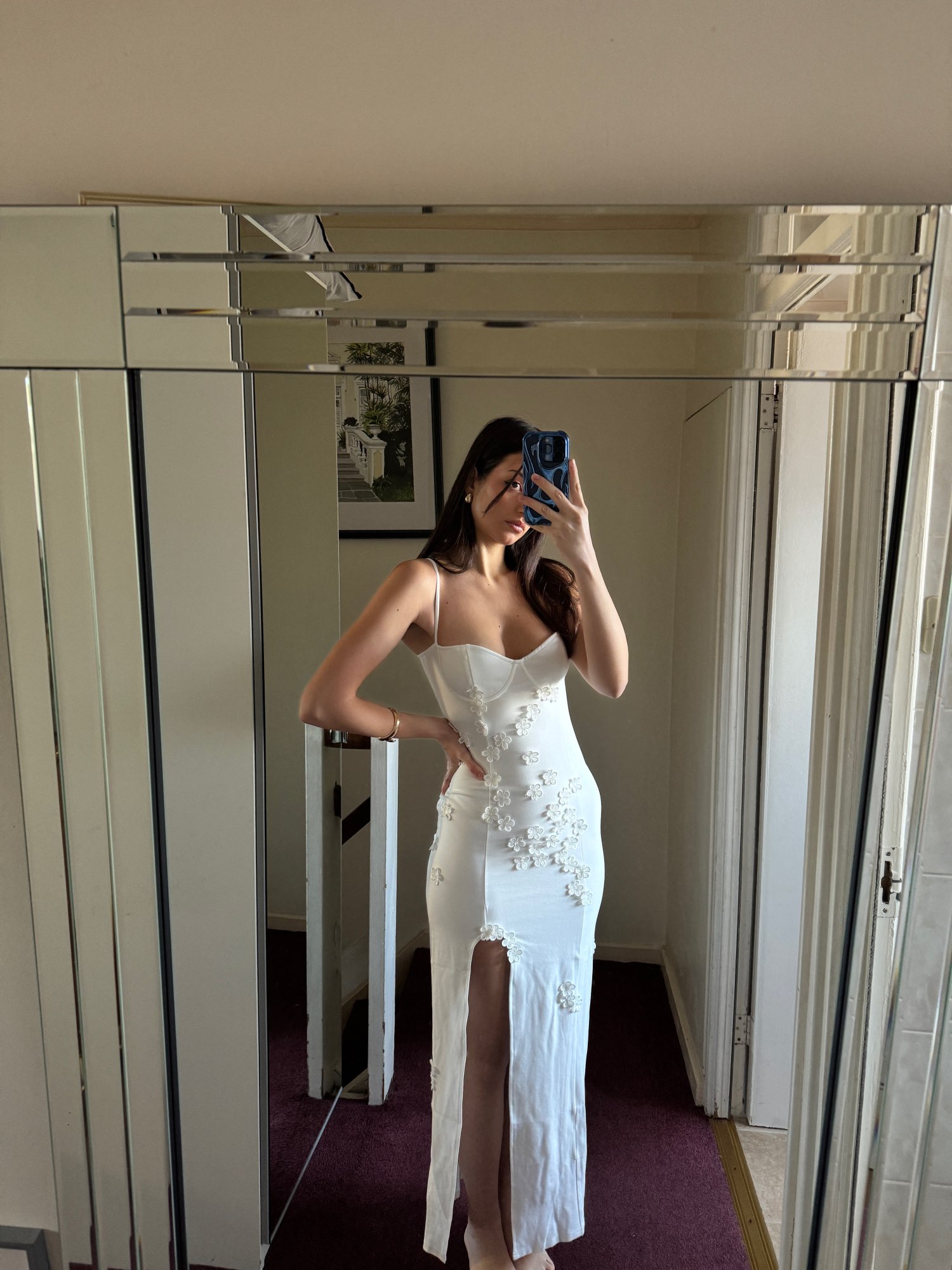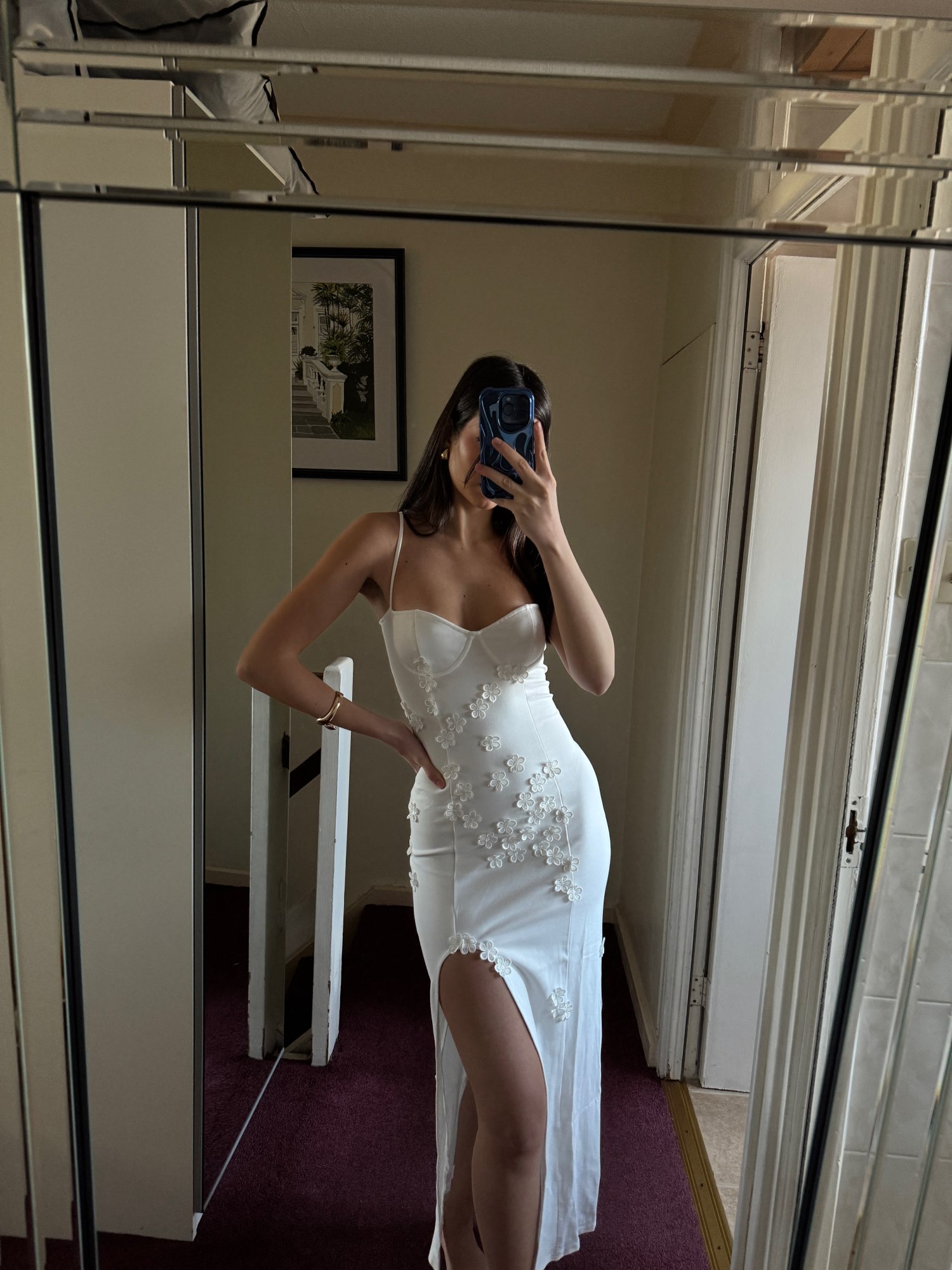 The 3d flowers on this dress is what makes it so cute! Perfect for spring and summer or even holiday. Dress has wired cups, adjustable straps, side slit and 3d flowers. I am wearing size s. I am 5’7 and my bust is 83cm, waist is 68cm and hips are 99cm