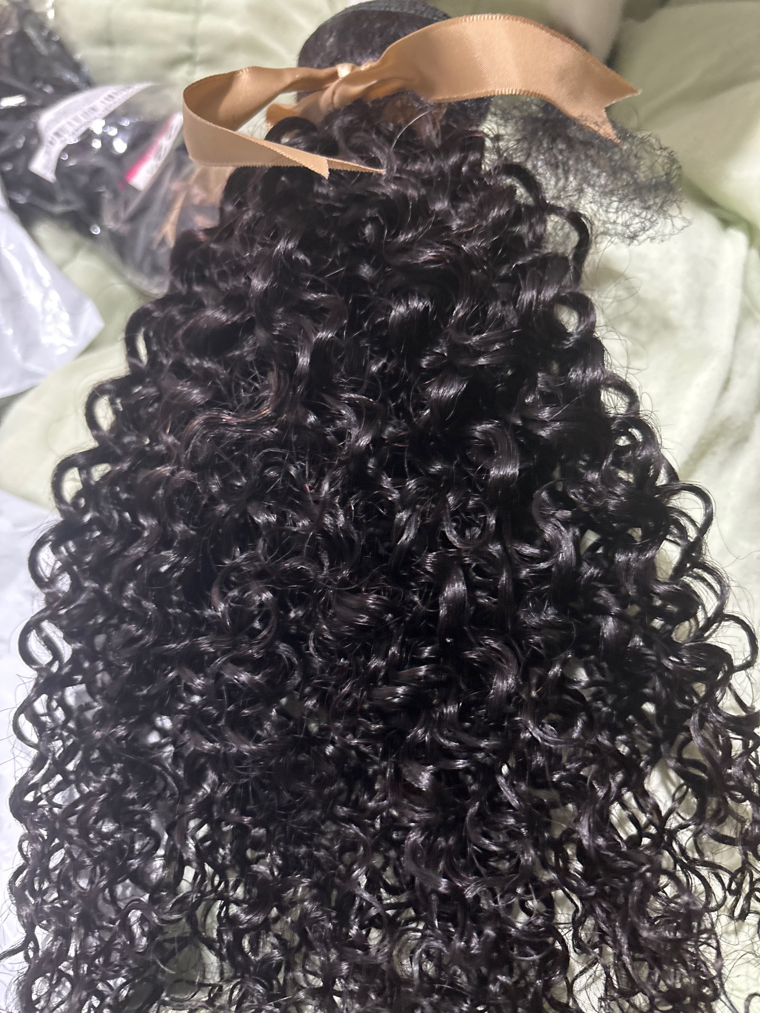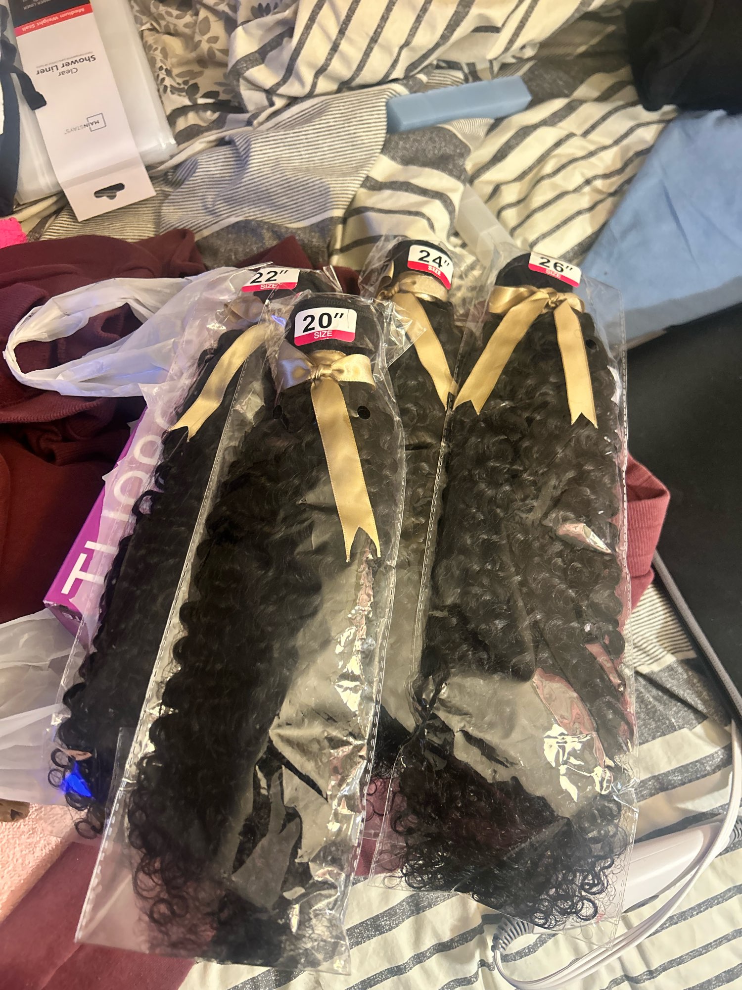 I took 4 piece, 22, 22, 24 ,24 inches And a 5 th package length 20 inches. Depending on the method you use to define your curls (hair mousse, gel, hands and water, spray, brush...) the curls you change shape and be cooperative and it's really great. The Wicks sound of very good qualities, and the curls are really very beautiful, you can also set the curls. With shampoo and I put lavender essential oil to remove all smell, and slow etc to cas. Where. When I washed, I combed with Knife own fingers and not with a comb where a brush. So there is very much hair loss, like some hair when washing. After washing several times with shampoo and lavender essential oil I let stand in hot water or I poured a few drops of lavender essential oil. I specify that there was no slow or lice in the hair, it was just as a precaution and to remove the smell.