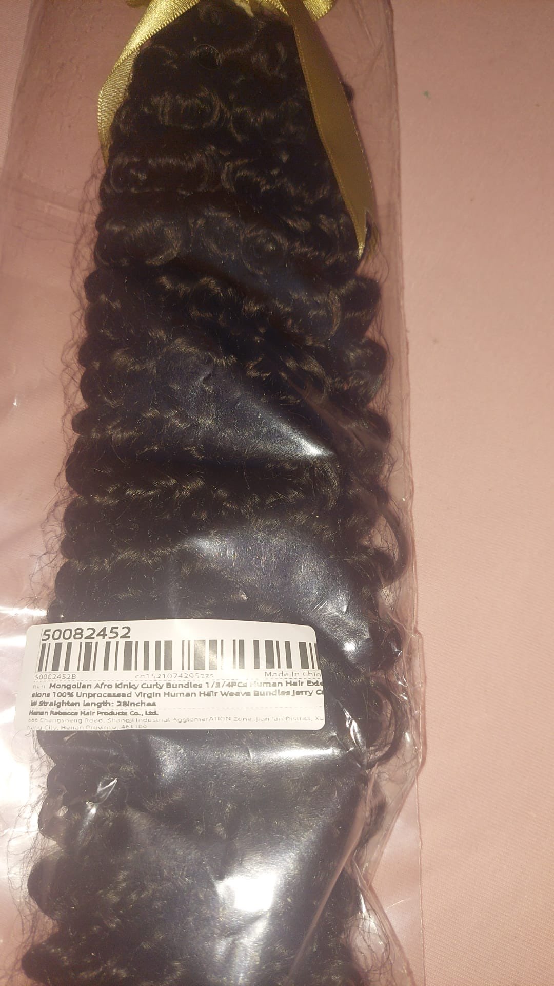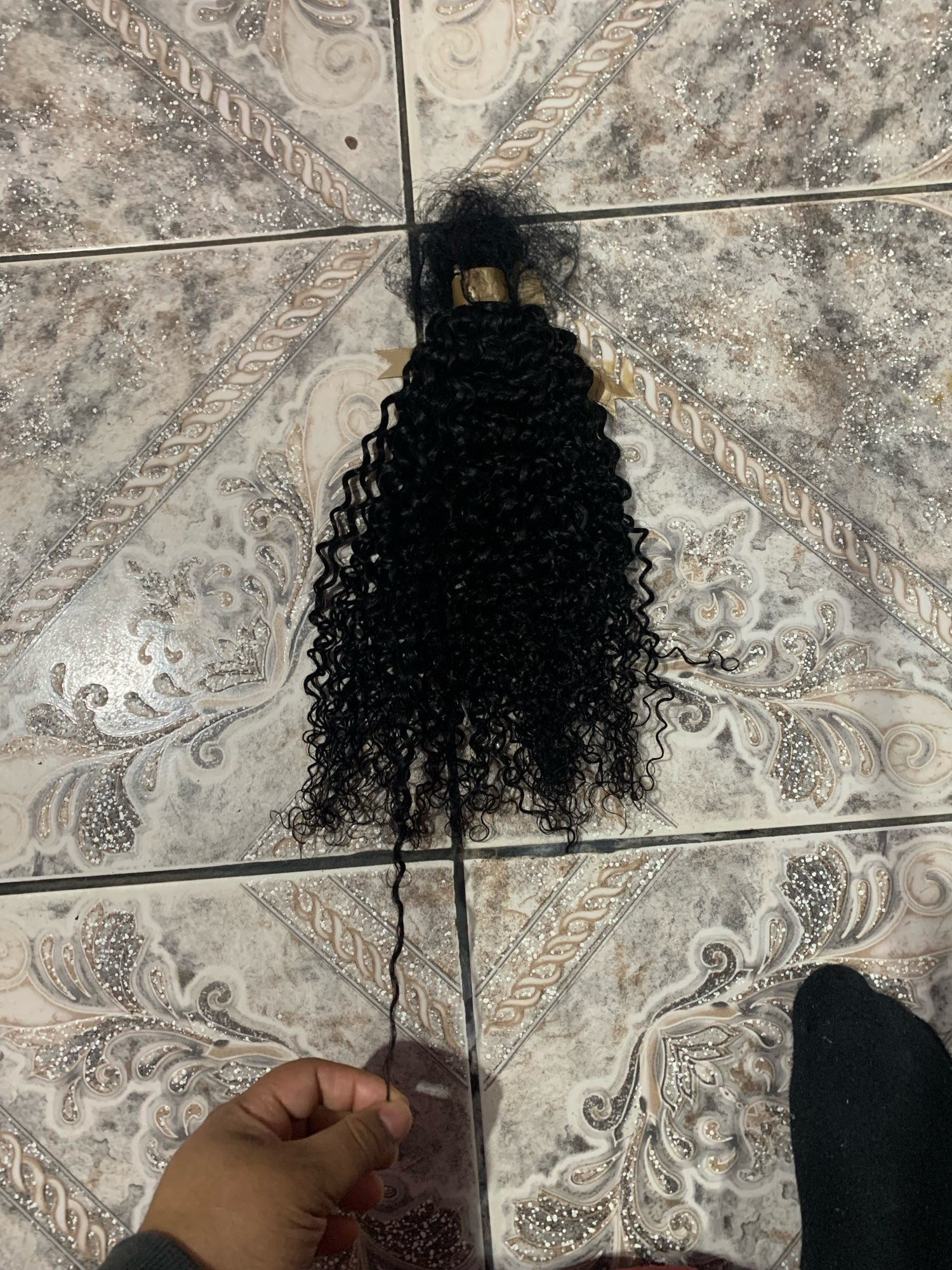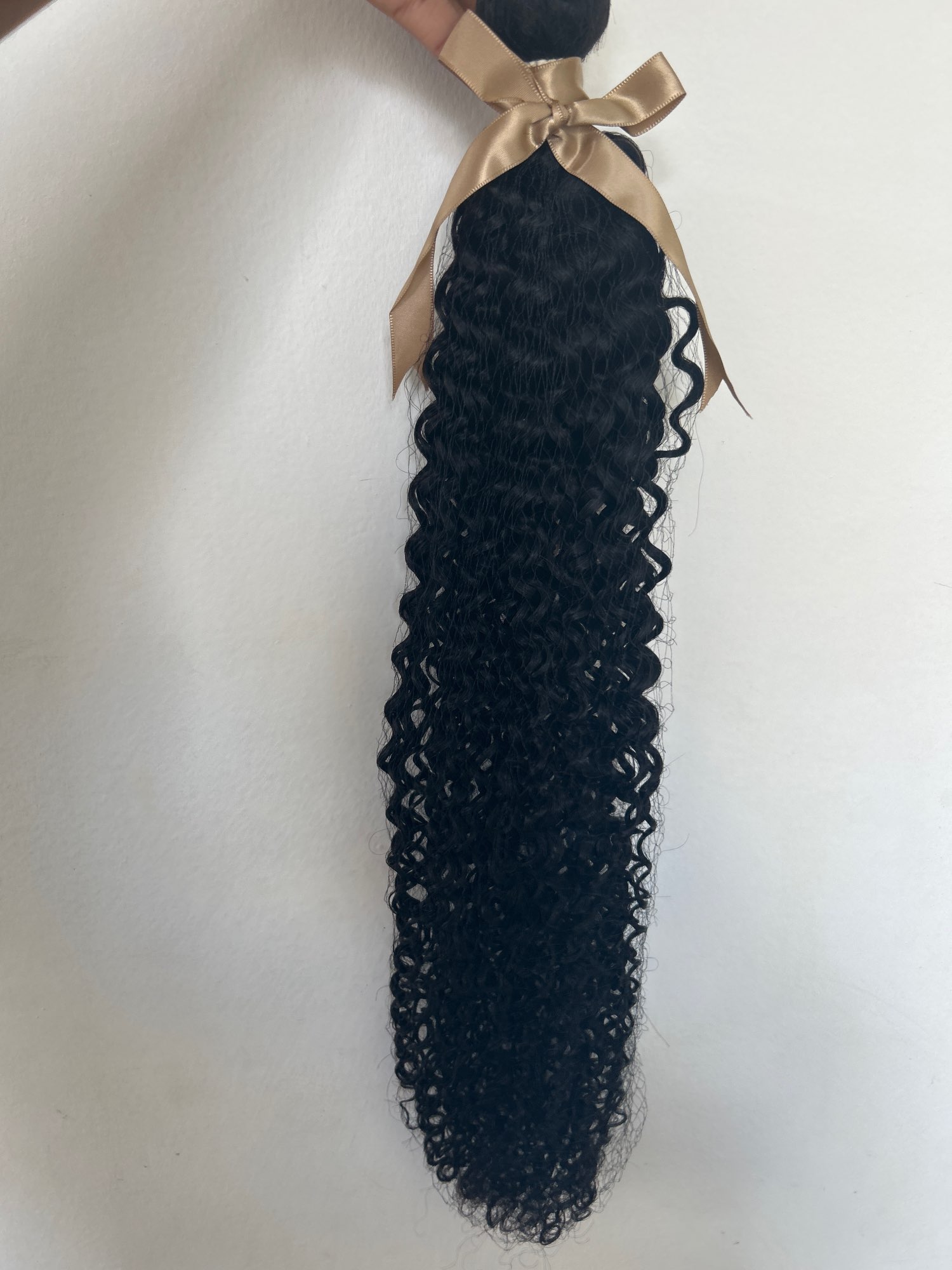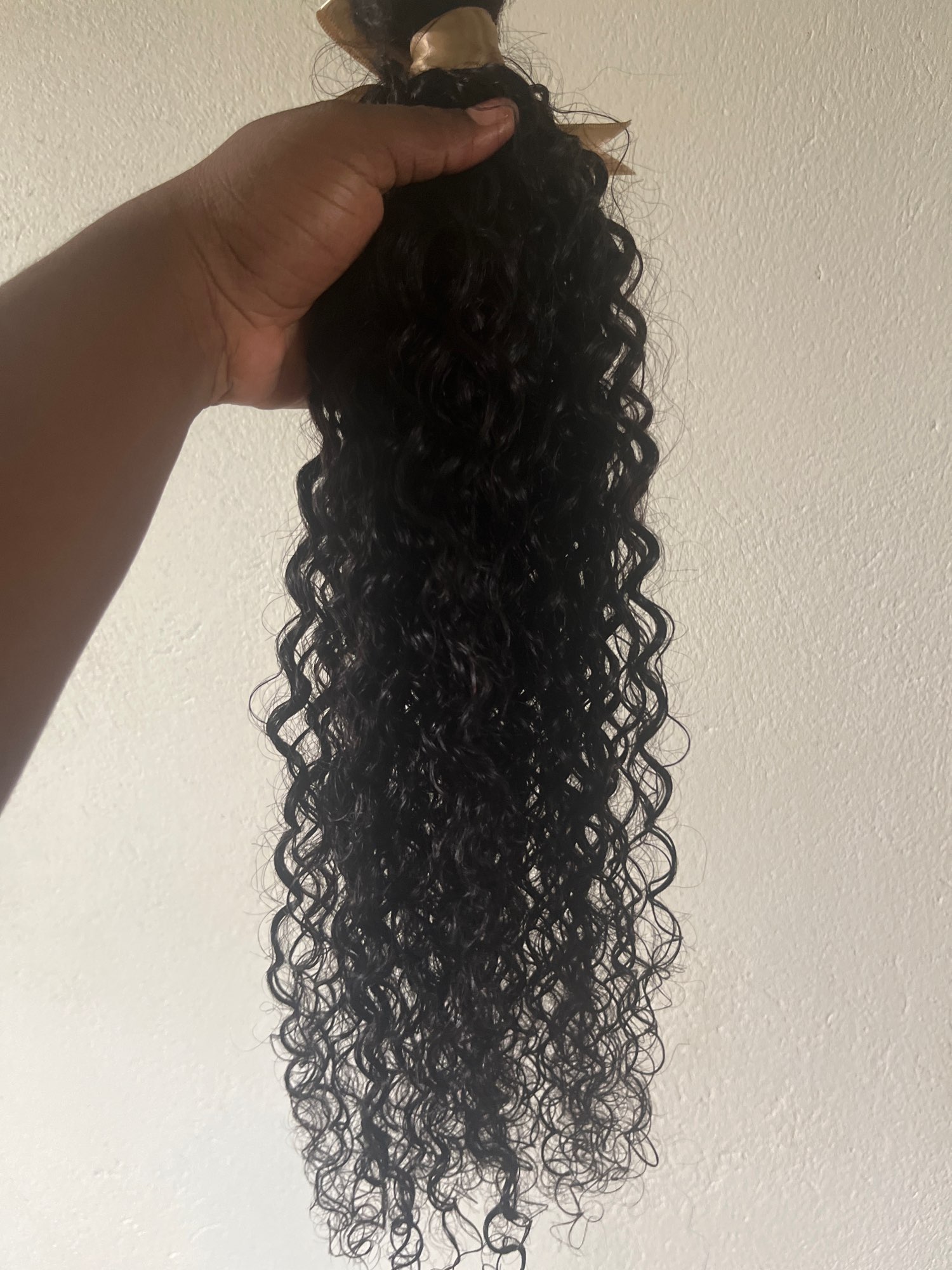 Good hair Nice curly hair. I wanted longer but nice for the most part to get a more natural defined hair look. This is human hair and it is very soft and easy to manage. This bundle can be washed and restyled and installed in so many ways. You can sew this hair in, glue it in, tape it in, clip it in or make a high or low ponytail. This is great quality hair.