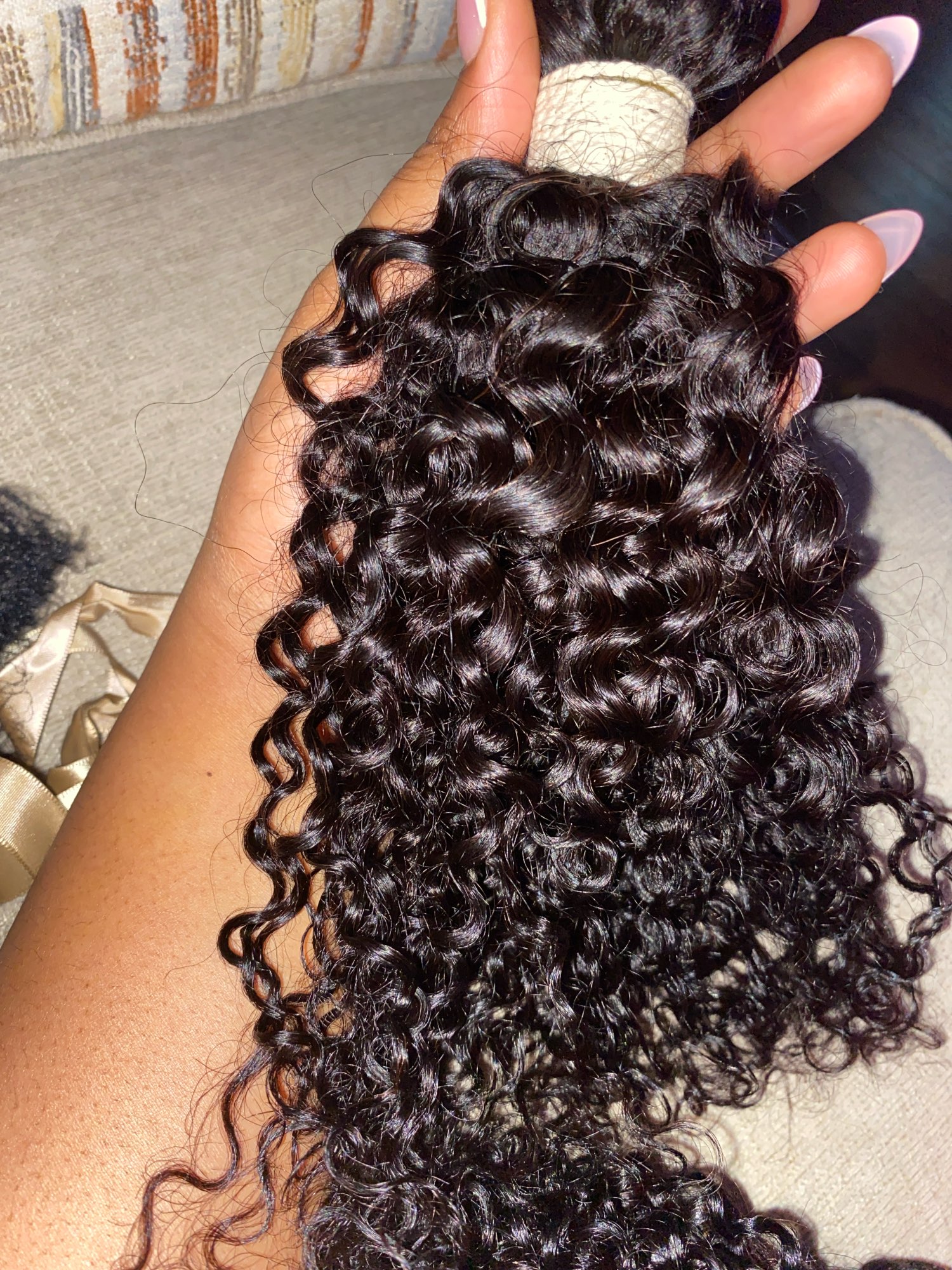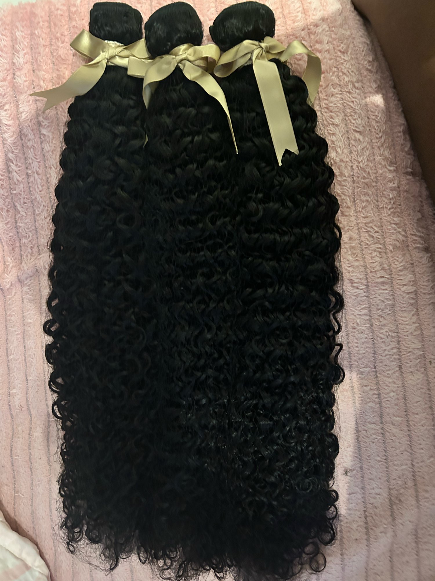 The hair is very soft I wish I got 4 bundles instead of 3 they look a bit thin from the first look but will definitely be washing it before installing. The curl pattern is beautiful. The delivery was quick came 3 days earlier than scheduled delivery to the U.K..
