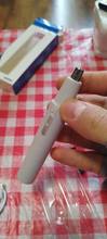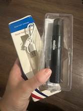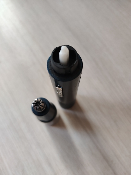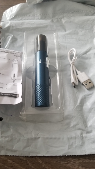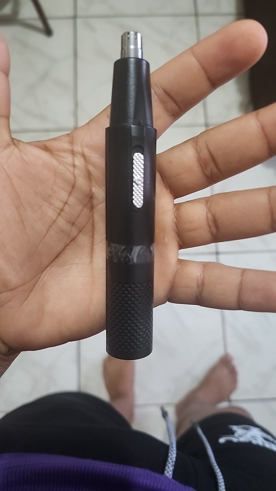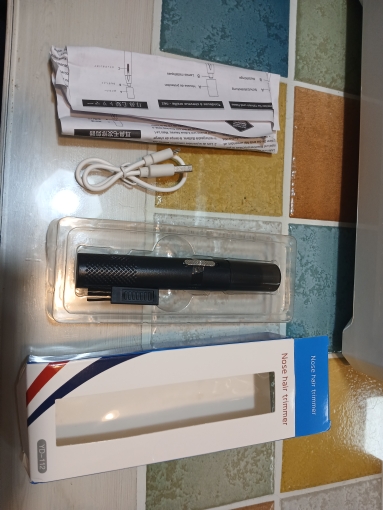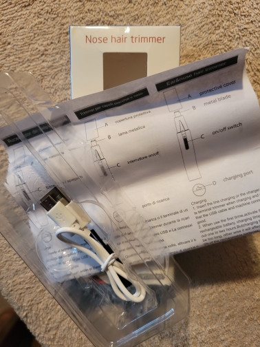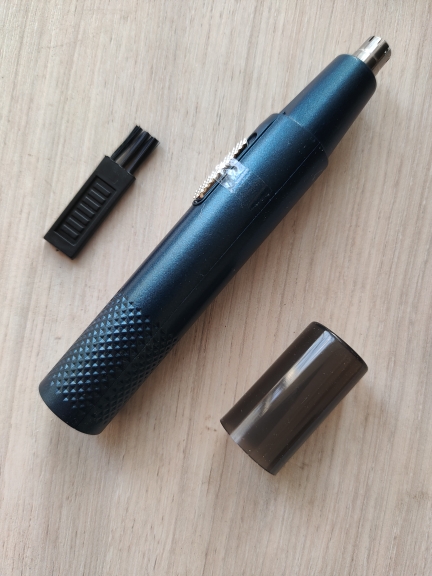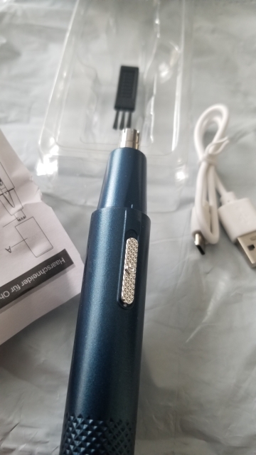 This little nose hair trimmer. is very slim and light. Does an okey job of trimming. Even has English instructions on insert paper.